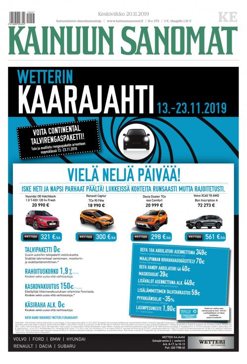 Kainuun Sanomat on elinvoimainen ja monipuolinen maakuntalehti. Tuttavallisemmin “Kainariksi” kutsuttu maakuntalehti tarjoaa kattavan kokonaistavoittavuuden sekä vahvan digitaalisen saatavuuden, mikä tekee lehdestä vahvan kanavan alueen tiedonvälityksessä. Kainuun Sanomat on koko Kainuun ääni, joka on ollut osana luomassa maakunnalle omaa identiteettiä.