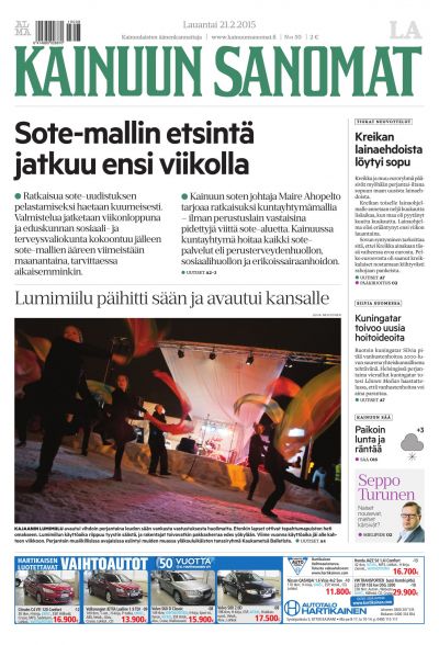 Kainuun Sanomat on elinvoimainen ja monipuolinen maakuntalehti. Tuttavallisemmin “Kainariksi” kutsuttu maakuntalehti tarjoaa kattavan kokonaistavoittavuuden sekä vahvan digitaalisen saatavuuden, mikä tekee lehdestä vahvan kanavan alueen tiedonvälityksessä. Kainuun Sanomat on koko Kainuun ääni, joka on ollut osana luomassa maakunnalle omaa identiteettiä.