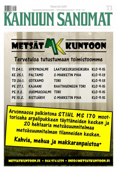 Kainuun Sanomat on elinvoimainen ja monipuolinen maakuntalehti. Tuttavallisemmin “Kainariksi” kutsuttu maakuntalehti tarjoaa kattavan kokonaistavoittavuuden sekä vahvan digitaalisen saatavuuden, mikä tekee lehdestä vahvan kanavan alueen tiedonvälityksessä. Kainuun Sanomat on koko Kainuun ääni, joka on ollut osana luomassa maakunnalle omaa identiteettiä.