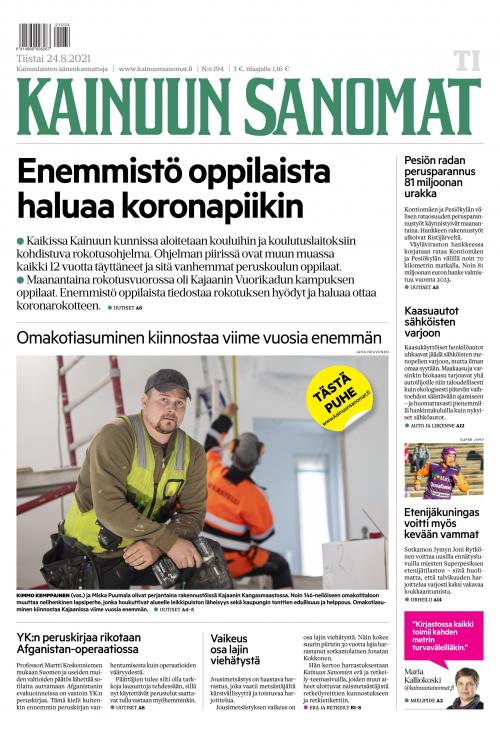 Kainuun Sanomat on elinvoimainen ja monipuolinen maakuntalehti. Tuttavallisemmin “Kainariksi” kutsuttu maakuntalehti tarjoaa kattavan kokonaistavoittavuuden sekä vahvan digitaalisen saatavuuden, mikä tekee lehdestä vahvan kanavan alueen tiedonvälityksessä. Kainuun Sanomat on koko Kainuun ääni, joka on ollut osana luomassa maakunnalle omaa identiteettiä.