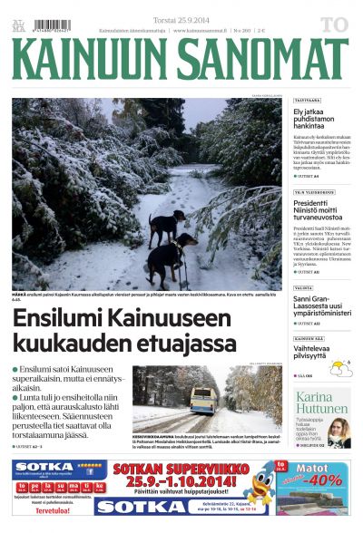 Kainuun Sanomat on elinvoimainen ja monipuolinen maakuntalehti. Tuttavallisemmin “Kainariksi” kutsuttu maakuntalehti tarjoaa kattavan kokonaistavoittavuuden sekä vahvan digitaalisen saatavuuden, mikä tekee lehdestä vahvan kanavan alueen tiedonvälityksessä. Kainuun Sanomat on koko Kainuun ääni, joka on ollut osana luomassa maakunnalle omaa identiteettiä.