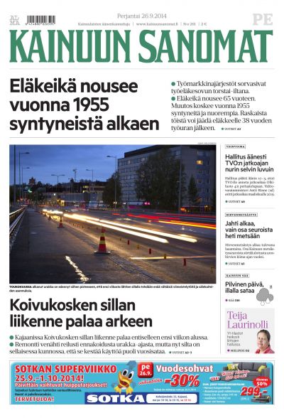 Kainuun Sanomat on elinvoimainen ja monipuolinen maakuntalehti. Tuttavallisemmin “Kainariksi” kutsuttu maakuntalehti tarjoaa kattavan kokonaistavoittavuuden sekä vahvan digitaalisen saatavuuden, mikä tekee lehdestä vahvan kanavan alueen tiedonvälityksessä. Kainuun Sanomat on koko Kainuun ääni, joka on ollut osana luomassa maakunnalle omaa identiteettiä.