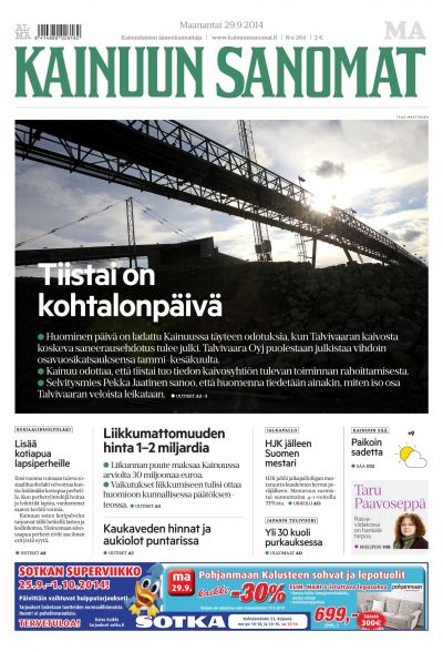 Kainuun Sanomat on elinvoimainen ja monipuolinen maakuntalehti. Tuttavallisemmin “Kainariksi” kutsuttu maakuntalehti tarjoaa kattavan kokonaistavoittavuuden sekä vahvan digitaalisen saatavuuden, mikä tekee lehdestä vahvan kanavan alueen tiedonvälityksessä. Kainuun Sanomat on koko Kainuun ääni, joka on ollut osana luomassa maakunnalle omaa identiteettiä.