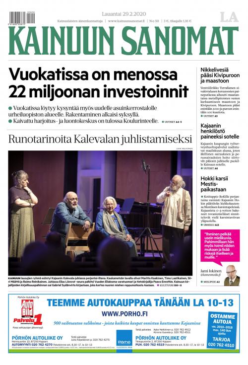 Kainuun Sanomat on elinvoimainen ja monipuolinen maakuntalehti. Tuttavallisemmin “Kainariksi” kutsuttu maakuntalehti tarjoaa kattavan kokonaistavoittavuuden sekä vahvan digitaalisen saatavuuden, mikä tekee lehdestä vahvan kanavan alueen tiedonvälityksessä. Kainuun Sanomat on koko Kainuun ääni, joka on ollut osana luomassa maakunnalle omaa identiteettiä.