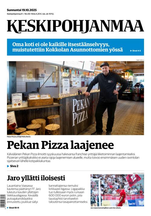 Keskipohjanmaa on viikon jokaisena päivänä ilmestyvä, elinvoimainen ja monipuolinen maakuntalehti. Vahvasti uutisellinen ja tuore Keskipohjanmaa pitää ajan tasalla niin alueen asioista kuin maan ja maailman menosta. Samalla se on inhimillinen mielipidelehti: tilaa keskustelulle ja sen ruokkimiselle löytyy päivittäin.