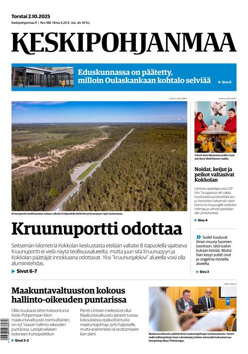 Keskipohjanmaa on viikon jokaisena päivänä ilmestyvä, elinvoimainen ja monipuolinen maakuntalehti. Vahvasti uutisellinen ja tuore Keskipohjanmaa pitää ajan tasalla niin alueen asioista kuin maan ja maailman menosta. Samalla se on inhimillinen mielipidelehti: tilaa keskustelulle ja sen ruokkimiselle löytyy päivittäin.