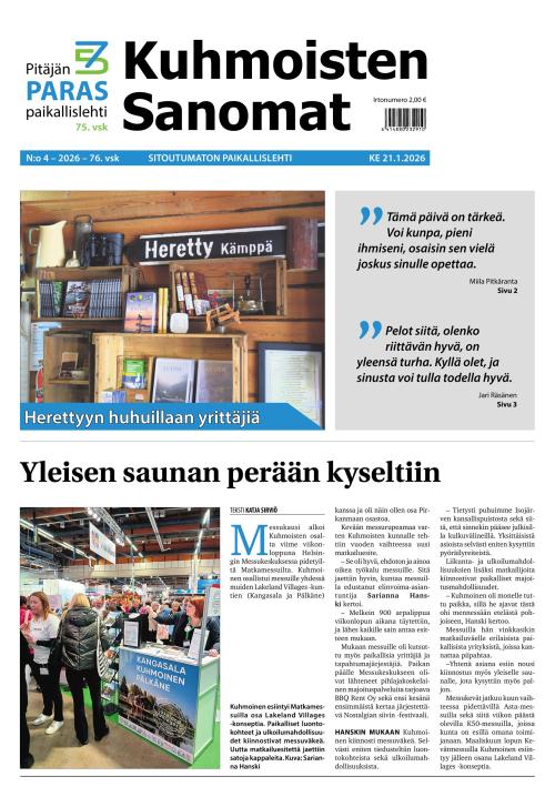 Kuhmoisten Sanomat on puolueeton, itsenäinen kotiseutulehti, joka ilmestyy kerran viikossa pääsääntöisesti keskiviikkoisin.