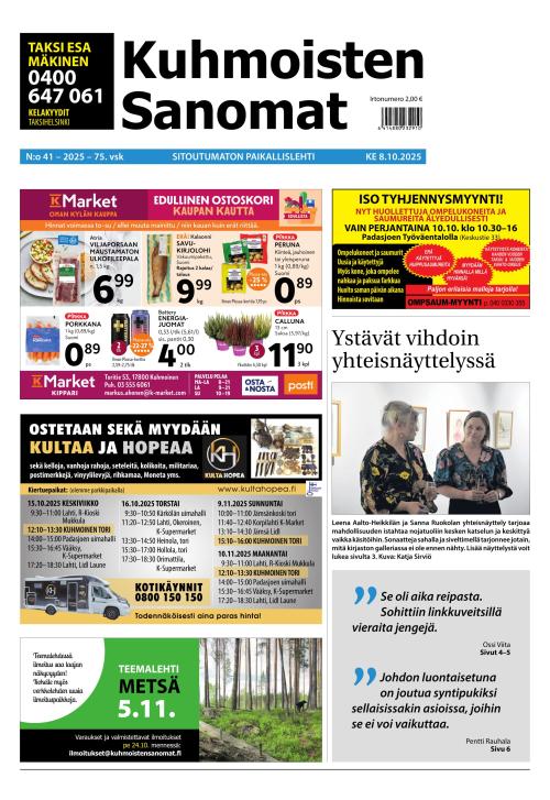 Kuhmoisten Sanomat on puolueeton, itsenäinen kotiseutulehti, joka ilmestyy kerran viikossa pääsääntöisesti keskiviikkoisin.