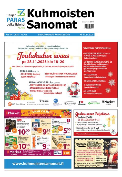 Kuhmoisten Sanomat on puolueeton, itsenäinen kotiseutulehti, joka ilmestyy kerran viikossa pääsääntöisesti keskiviikkoisin.