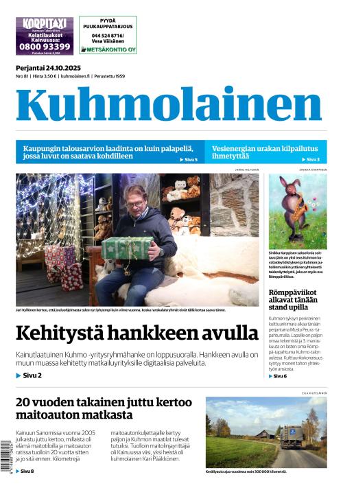 Paikallislehti Kuhmolainen ilmestyy tiistaisin ja perjantaisin. Kuhmolainen kertoo Kainuun itäisen rajakaupungin uutiset, ilmiöt ja tapahtumat. Kulttuuristaan, villistä luonnostaan ja puuteollisuudestaan tunnetun kaupungin uusimmat uutiset nopeasti: www.kuhmolainen.fi.