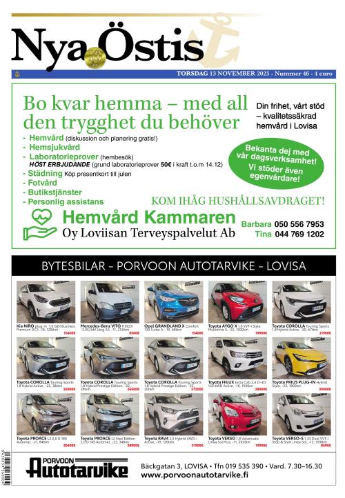 Vi utkommer en gång i veckan på torsdagar och har omkring 5 500 läsare. På webben nyaostis.fi kan du läsa totalt lokala nyheter.
