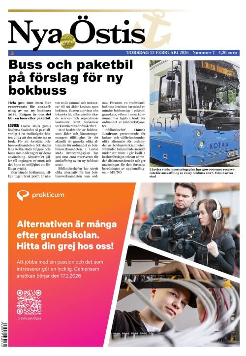 Vi utkommer en gång i veckan på torsdagar och har omkring 5 500 läsare. På webben nyaostis.fi kan du läsa totalt lokala nyheter.