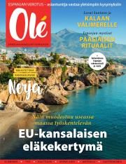 Olé-lehti on korvaamaton tietopaketti Espanjassa asuville, muutosta unelmoiville ja kaikille maasta kiinnostuneille. Lehti selvittää käytännön kysymykset maassa asumisesta ja elämisestä sekä vie lukijansa värikkäälle ja mukaansatempaavalle matkalle ympäri Espanjaa.