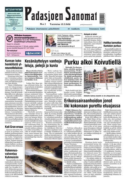 Uutistarjontaa täydentää viikon mittaan myös verkkolehti osoitteessa: www.padasjoensanomat.fi