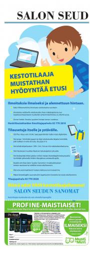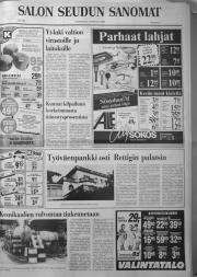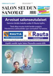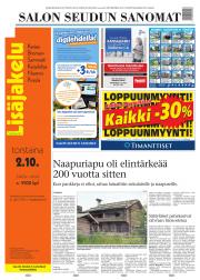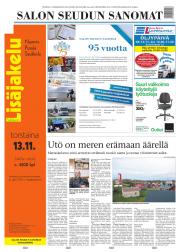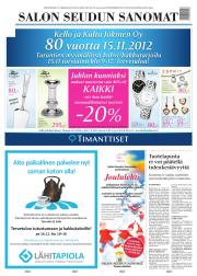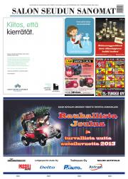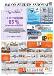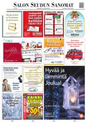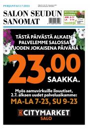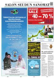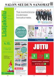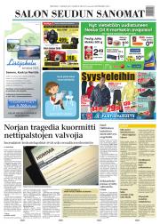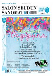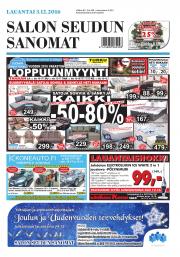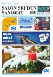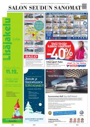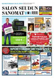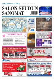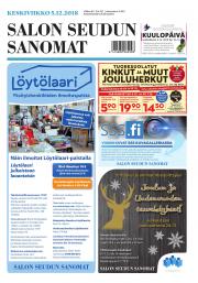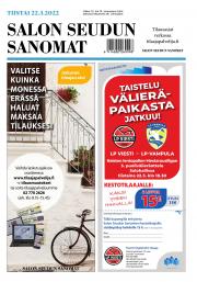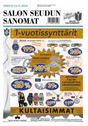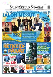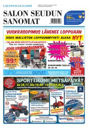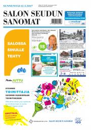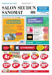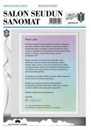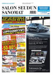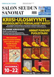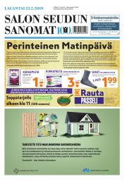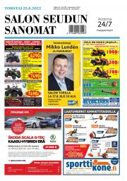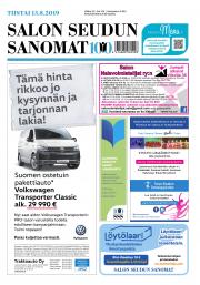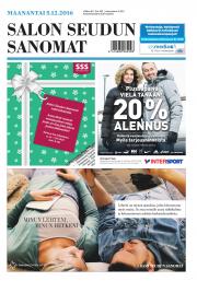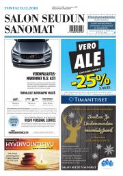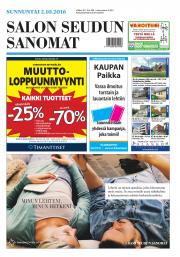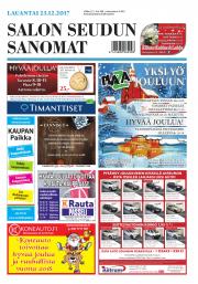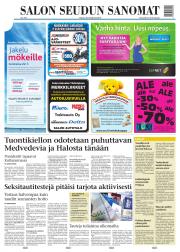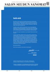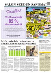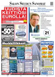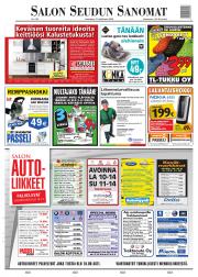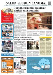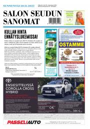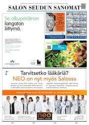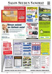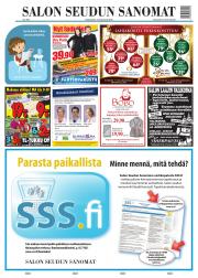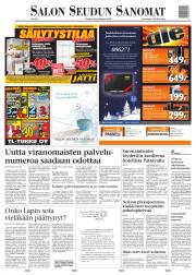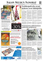 Salon Seudun Sanomat tuo Salon ja lähialueen uutiset, tarinat ja tapahtumat luoksesi joka päivä. Meille on tärkeää pitää sinut ajan tasalla paikallisista asioista, mutta myös suuremmista valtakunnallisista ja kansainvälisistä aiheista. Digisisältöjen tilaajana saat rajattoman pääsyn verkkosivuillemme, joka päivä ilmestyvään näköislehteen, SSS sovellukseen sekä kattavaan lehtiarkistoon jo ilmestyneitä numeroita, alkaen jopa vuodesta 1919. (Huom. laaja lehtiarkisto ei ole veloituksetta suoraan Lehtiluukusta ostaneiden käytössä.)