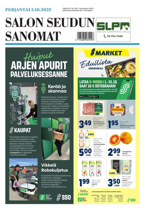 Salon Seudun Sanomat tuo Salon ja lähialueen uutiset, tarinat ja tapahtumat luoksesi joka päivä. Meille on tärkeää pitää sinut ajan tasalla paikallisista asioista, mutta myös suuremmista valtakunnallisista ja kansainvälisistä aiheista. Digisisältöjen tilaajana saat rajattoman pääsyn verkkosivuillemme, joka päivä ilmestyvään näköislehteen, SSS sovellukseen sekä kattavaan lehtiarkistoon jo ilmestyneitä numeroita, alkaen jopa vuodesta 1919. (Huom. laaja lehtiarkisto ei ole veloituksetta suoraan Lehtiluukusta ostaneiden käytössä.)