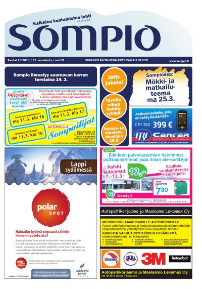 Sompio on Sodankylän paikallislehti. Sen avulla lukija pysyy parhaiten perillä Sydän-Lapin ajankohtaisista asioista, ihmisistä ja ilmiöistä. Lehti tarjoaa monipuolisesti näkökulmia, tilaa keskustelulle ja haluaa osaltaan tukea alueen elinvoimaisuutta.