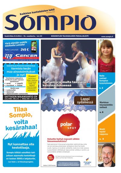 Sompio on Sodankylän paikallislehti. Sen avulla lukija pysyy parhaiten perillä Sydän-Lapin ajankohtaisista asioista, ihmisistä ja ilmiöistä. Lehti tarjoaa monipuolisesti näkökulmia, tilaa keskustelulle ja haluaa osaltaan tukea alueen elinvoimaisuutta.
