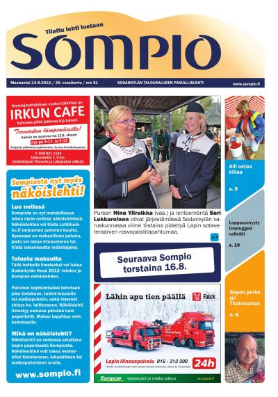 Sompio on Sodankylän paikallislehti. Sen avulla lukija pysyy parhaiten perillä Sydän-Lapin ajankohtaisista asioista, ihmisistä ja ilmiöistä. Lehti tarjoaa monipuolisesti näkökulmia, tilaa keskustelulle ja haluaa osaltaan tukea alueen elinvoimaisuutta.