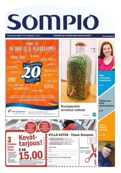 Sompio on Sodankylän paikallislehti. Sen avulla lukija pysyy parhaiten perillä Sydän-Lapin ajankohtaisista asioista, ihmisistä ja ilmiöistä. Lehti tarjoaa monipuolisesti näkökulmia, tilaa keskustelulle ja haluaa osaltaan tukea alueen elinvoimaisuutta.