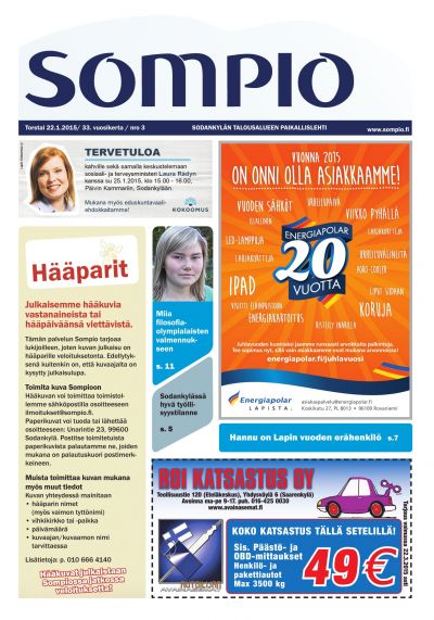 Sompio on Sodankylän paikallislehti. Sen avulla lukija pysyy parhaiten perillä Sydän-Lapin ajankohtaisista asioista, ihmisistä ja ilmiöistä. Lehti tarjoaa monipuolisesti näkökulmia, tilaa keskustelulle ja haluaa osaltaan tukea alueen elinvoimaisuutta.