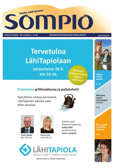 Sompio on Sodankylän paikallislehti. Sen avulla lukija pysyy parhaiten perillä Sydän-Lapin ajankohtaisista asioista, ihmisistä ja ilmiöistä. Lehti tarjoaa monipuolisesti näkökulmia, tilaa keskustelulle ja haluaa osaltaan tukea alueen elinvoimaisuutta.