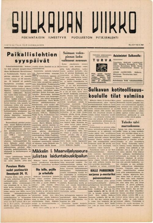 Sulkavalla soutupitäjässä keskiviikkoisin ilmestyvä Sulkavan Kotiseutulehti Oy:n julkaisema paikallislehti.