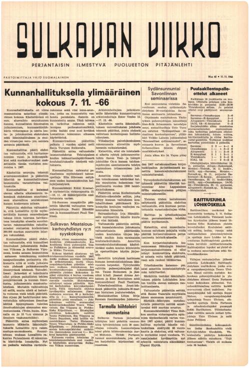 Sulkavalla soutupitäjässä keskiviikkoisin ilmestyvä Sulkavan Kotiseutulehti Oy:n julkaisema paikallislehti.