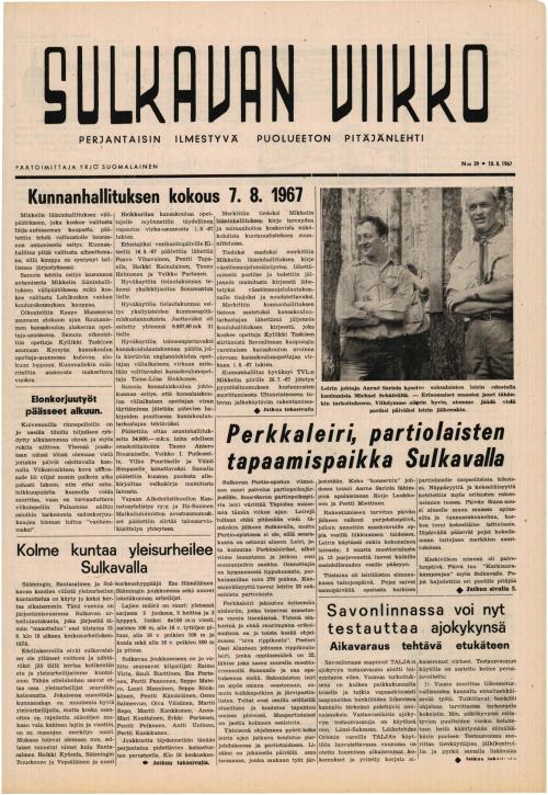 Sulkavalla soutupitäjässä keskiviikkoisin ilmestyvä Sulkavan Kotiseutulehti Oy:n julkaisema paikallislehti.