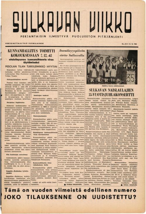 Sulkavalla soutupitäjässä keskiviikkoisin ilmestyvä Sulkavan Kotiseutulehti Oy:n julkaisema paikallislehti.