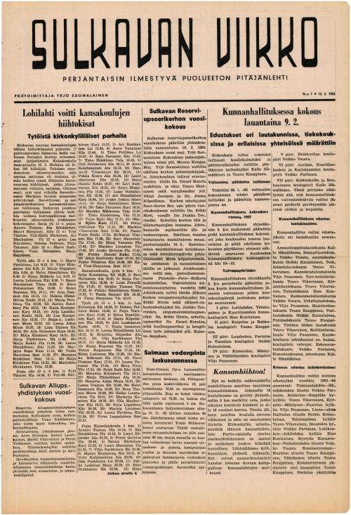 Sulkavalla soutupitäjässä keskiviikkoisin ilmestyvä Sulkavan Kotiseutulehti Oy:n julkaisema paikallislehti.