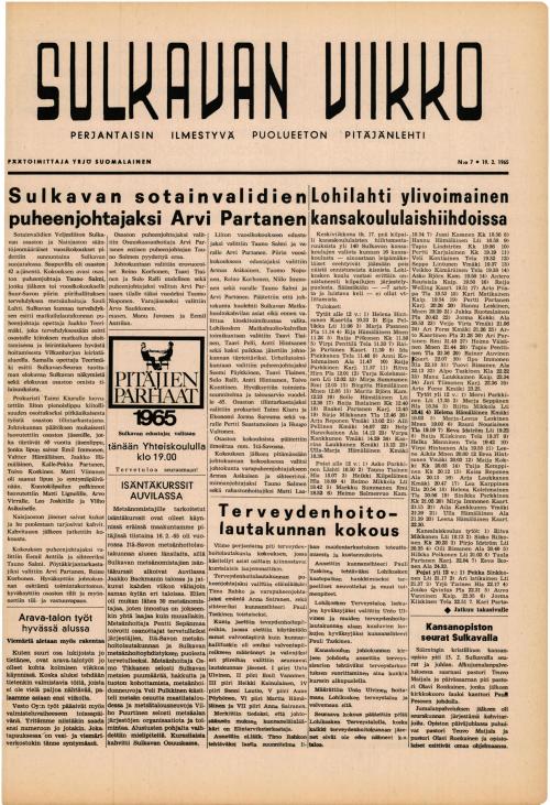 Sulkavalla soutupitäjässä keskiviikkoisin ilmestyvä Sulkavan Kotiseutulehti Oy:n julkaisema paikallislehti.