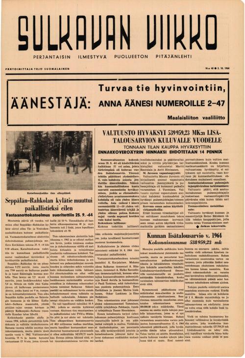 Sulkavalla soutupitäjässä keskiviikkoisin ilmestyvä Sulkavan Kotiseutulehti Oy:n julkaisema paikallislehti.