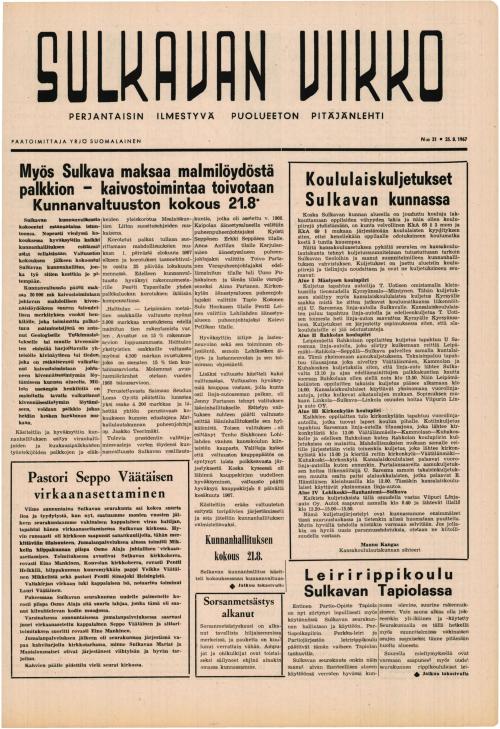 Sulkavalla soutupitäjässä keskiviikkoisin ilmestyvä Sulkavan Kotiseutulehti Oy:n julkaisema paikallislehti.