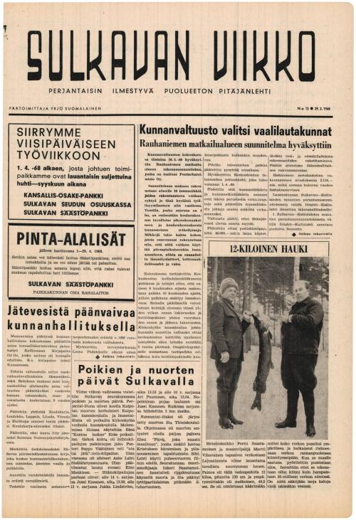 Sulkavalla soutupitäjässä keskiviikkoisin ilmestyvä Sulkavan Kotiseutulehti Oy:n julkaisema paikallislehti.