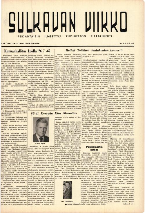 Sulkavalla soutupitäjässä keskiviikkoisin ilmestyvä Sulkavan Kotiseutulehti Oy:n julkaisema paikallislehti.