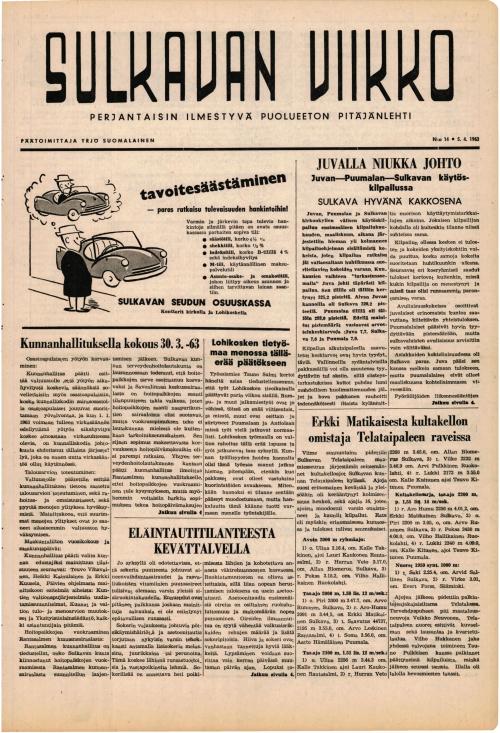 Sulkavalla soutupitäjässä keskiviikkoisin ilmestyvä Sulkavan Kotiseutulehti Oy:n julkaisema paikallislehti.