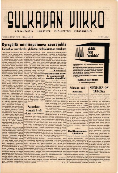 Sulkavalla soutupitäjässä keskiviikkoisin ilmestyvä Sulkavan Kotiseutulehti Oy:n julkaisema paikallislehti.
