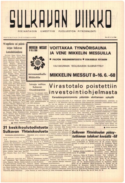 Sulkavalla soutupitäjässä keskiviikkoisin ilmestyvä Sulkavan Kotiseutulehti Oy:n julkaisema paikallislehti.