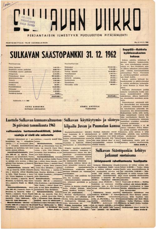 Sulkavalla soutupitäjässä keskiviikkoisin ilmestyvä Sulkavan Kotiseutulehti Oy:n julkaisema paikallislehti.