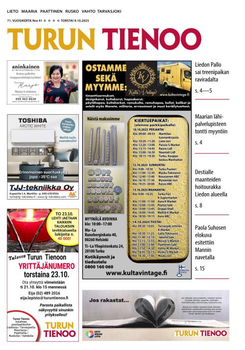 Turun Tienoo on kerran viikossa torstaisin Liedossa, Ruskolla ja Turun pohjoisissa kaupunginosissa ilmestyvä puolueeton paikallislehti. Turun Tienoo on alueensa luetuin lehti ja tutkitusti tehokas ilmoitusväline. Alueen uutistarjonta välitetään sekä painetussa lehdessä että näköislehdessä ja verkkosivuilla. Olemme myös Facebookissa.