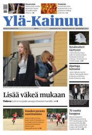 Lue Ylä-Kainuusta tiistaisin ja torstaisin pohjoisen Kainuun merkittävimmät uutiset ja tuoreimmat kuulumiset. Paikallislehti rakentaa yhdessä lukijoidensa ja muiden yhteistyökumppaneidensa kanssa alueen hyvää huomista. Ylakainuu.fi elää ajassa!