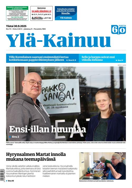 Lue Ylä-Kainuusta tiistaisin ja torstaisin pohjoisen Kainuun merkittävimmät uutiset ja tuoreimmat kuulumiset. Paikallislehti rakentaa yhdessä lukijoidensa ja muiden yhteistyökumppaneidensa kanssa alueen hyvää huomista. Ylakainuu.fi elää ajassa!