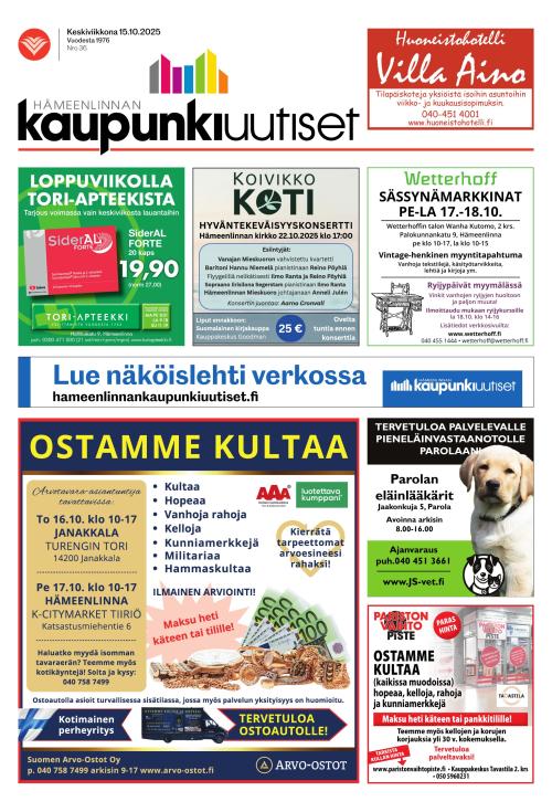 Hämeenlinnan Kaupunkiuutiset on Hämeenlinnassa ja ympäristökunnissa kerranviikossa ilmestyvä kaupunkilehti. Lehti käsittelee ilmestymisalueensa ihmisiä, tapahtumia sekä ajankohtaisia asioita ja uutisia. Hämeenlinnan Kaupunkiuutisten näköislehti on ilmainen.Pääset tuoreimpaan näköislehteen klikkaamalla lehden etusivun kuvaa.