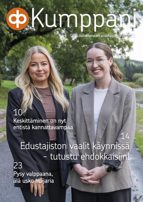 OP Lounaismaan asiakaslehti, jossa esitellään pankin palveluja ja ajankohtaisia rahoitukseen, varainhoitoon, vakuuttamiseen ja säästämiseen liittyviä asioita.