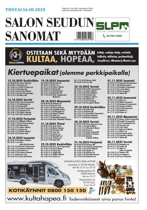 Salon Seudun Sanomat tuo Salon ja lähialueen uutiset, tarinat ja tapahtumat luoksesi joka päivä. Meille on tärkeää pitää sinut ajan tasalla paikallisista asioista, mutta myös suuremmista valtakunnallisista ja kansainvälisistä aiheista. Digisisältöjen tilaajana saat rajattoman pääsyn verkkosivuillemme, joka päivä ilmestyvään näköislehteen, SSS sovellukseen sekä kattavaan lehtiarkistoon jo ilmestyneitä numeroita, alkaen jopa vuodesta 1919. (Huom. laaja lehtiarkisto ei ole veloituksetta suoraan Lehtiluukusta ostaneiden käytössä.)