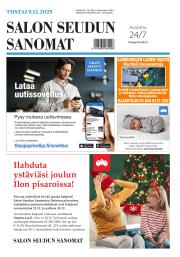 Salon Seudun Sanomat tuo Salon ja lähialueen uutiset, tarinat ja tapahtumat luoksesi joka päivä. Meille on tärkeää pitää sinut ajan tasalla paikallisista asioista, mutta myös suuremmista valtakunnallisista ja kansainvälisistä aiheista. Digisisältöjen tilaajana saat rajattoman pääsyn verkkosivuillemme, joka päivä ilmestyvään näköislehteen, SSS sovellukseen sekä kattavaan lehtiarkistoon jo ilmestyneitä numeroita, alkaen jopa vuodesta 1919. (Huom. laaja lehtiarkisto ei ole veloituksetta suoraan Lehtiluukusta ostaneiden käytössä.)