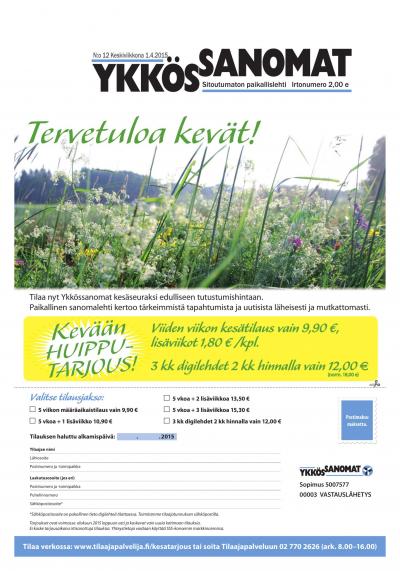 Ykkössanomat on myös alueensa vankka ilmoitusväline: koska paikallislehti luetaan moneen kertaan ja säilytetään usein seuraavan lehden ilmestymiseen saakka, ilmoituksetkin luetaan tarkkaan. Lehden ilmestymispäivä torstai on ilmoitusasiakkaidemme kannalta erinomainen: monesti perheet tekevät isommat ostoksensa yhdessä viikonloppuna.