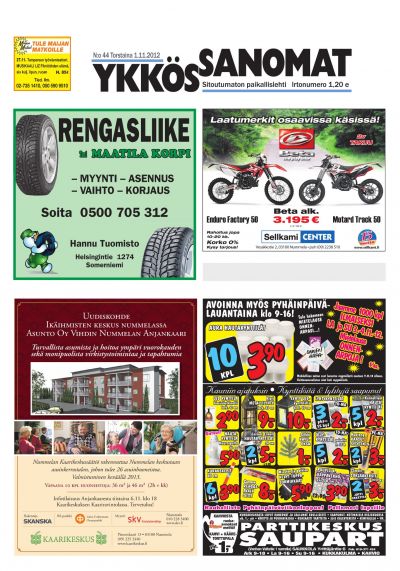 Ykkössanomat on myös alueensa vankka ilmoitusväline: koska paikallislehti luetaan moneen kertaan ja säilytetään usein seuraavan lehden ilmestymiseen saakka, ilmoituksetkin luetaan tarkkaan. Lehden ilmestymispäivä torstai on ilmoitusasiakkaidemme kannalta erinomainen: monesti perheet tekevät isommat ostoksensa yhdessä viikonloppuna.
