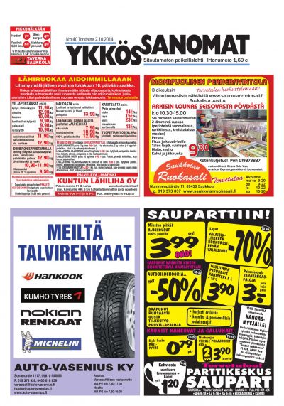 Ykkössanomat on myös alueensa vankka ilmoitusväline: koska paikallislehti luetaan moneen kertaan ja säilytetään usein seuraavan lehden ilmestymiseen saakka, ilmoituksetkin luetaan tarkkaan. Lehden ilmestymispäivä torstai on ilmoitusasiakkaidemme kannalta erinomainen: monesti perheet tekevät isommat ostoksensa yhdessä viikonloppuna.